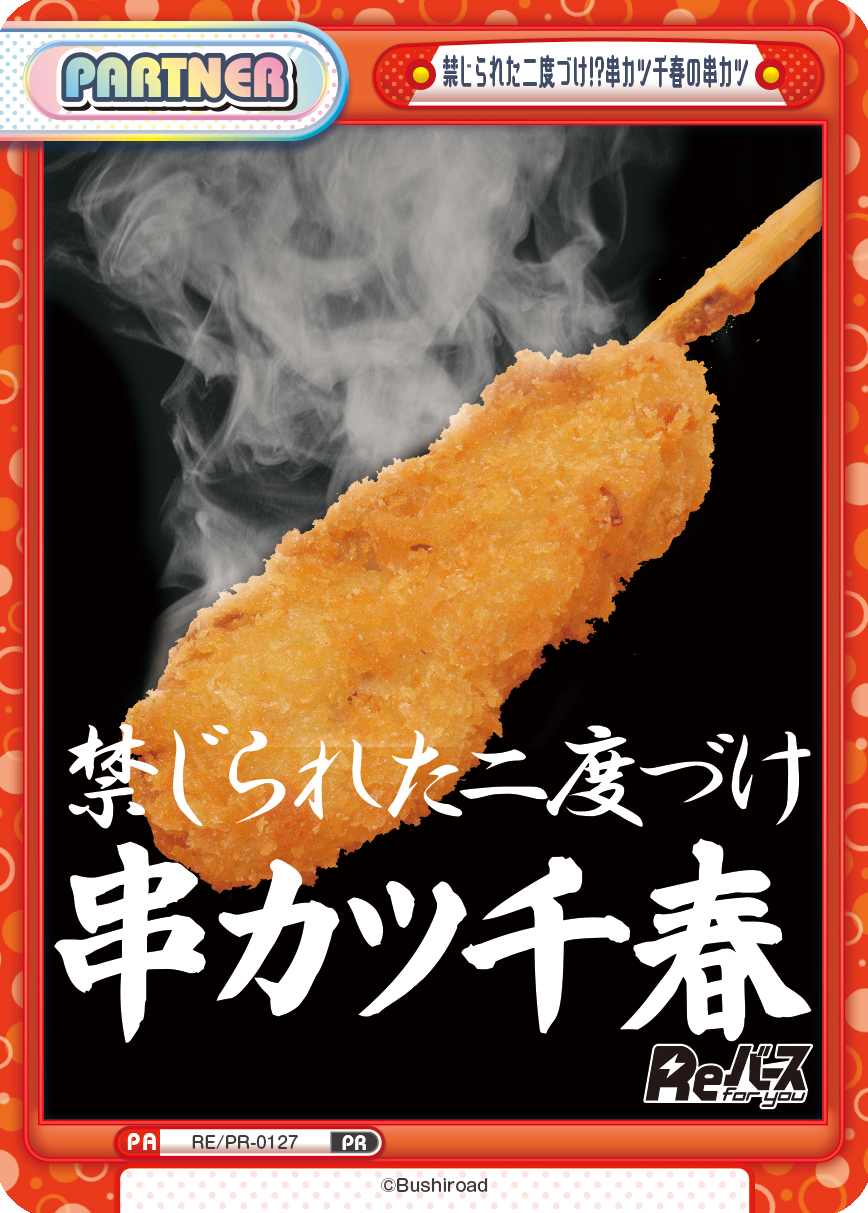 今年もあります!大人気の『禁じられた二度づけ!?串カツ千春の串カツ』!新規PRカードの特典付きです!